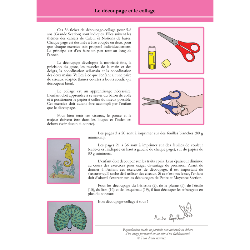 36 fiches de découpage pour Grande Section (5-6 ans).
