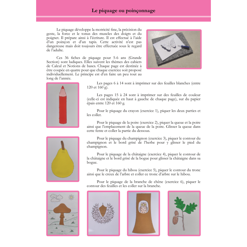 36 fiches de piquage pour Grande Section (5-6 ans).