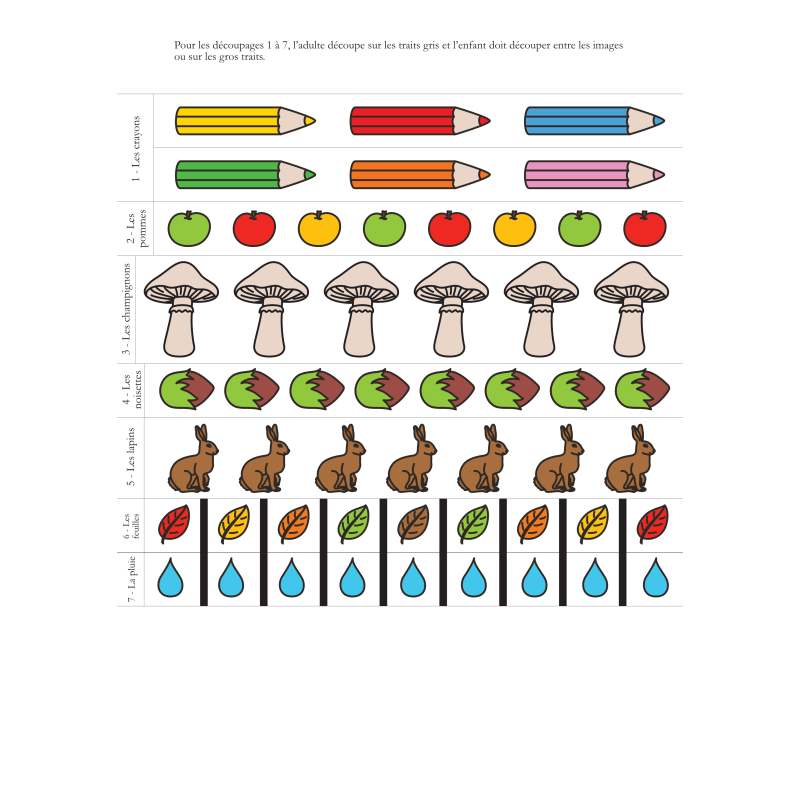 36 fiches de découpage pour Petite Section (3-4 ans).