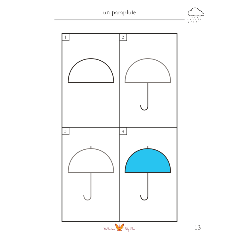 Ces fiches proposent 72 dessins progressifs en quatre étapes. Les thèmes des dessins correspondent aux autres cahiers de la collection. Ils sont répartis sur 36 semaines, chaque semaine comprenant deux dessins. Les croquis sont à la fois simples et réalistes, jolis et autant que possible conformes à la réalité de la nature et adaptés aux enfants de 4-5 ans.