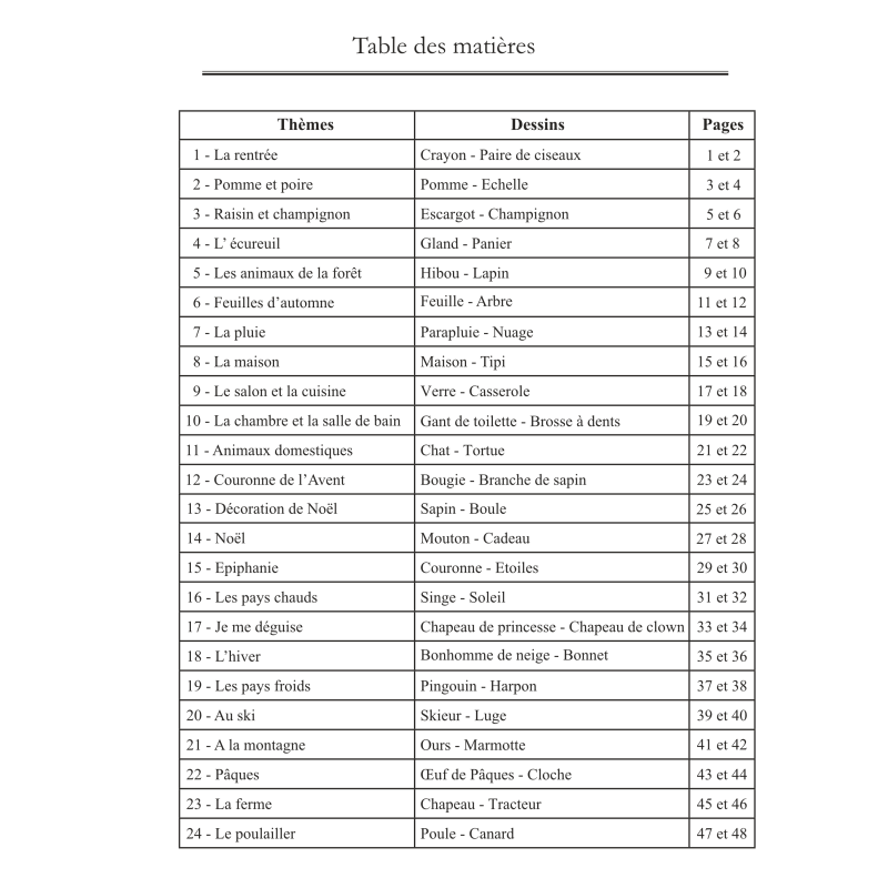 Ces fiches les aideront à effectuer leurs premiers pas dans le dessin. Outre l'attirance très importante des enfants vers les dessins dirigés, ceux-ci permettent de travailler la maîtrise des tracés et d'enrichir leur répertoire personnel. Cet entraînement par l’observation et la reproduction leur donnera peu à peu confiance en eux et ainsi se développera chez eux le goût du dessin qui laissera peu à peu la place à leur imagination et leur spontanéité.