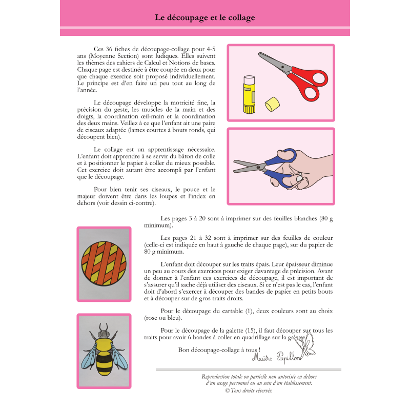 36 fiches de découpage pour Moyenne Section (4-5 ans).